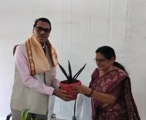 प्रो. कल्पलता जी ने मुख्य अतिथि का सम्मान बुके, अंगवस्त्र व पौधा देकर किया।