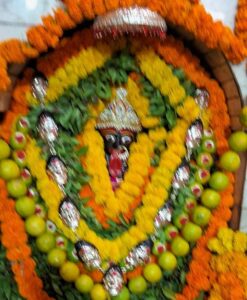 माँ की झांकी नयनाभिराम लग रही थी। माँ को पंचामृत से अभिषेक कराकर नवीन वस्त्र पहनाया गया। रजत मुंड माला पहना कर मंगला आरती की गई। मन्दिर को सवा कुंटल कामनी पत्तियों, विभिन्न पुष्प माला और विद्युत झालरों से आकर्षक सजावट की गई थी। रात्रि 8 बजे माँ पंचमकार भोग लगाकर 108 धी बत्ती एवं सवा किलो कपूर से मां की महाआरती की गयी। महंत गोपाल गिरि की देखरेख रात्रि में तांत्रिक अनुष्ठान हवन पूजन हुआ। दर्शन पूजन के लिए मन्दिर पर दर्शनार्थियो की खासी भीड़ रही । मां के दरबार जयकारे से गूंजता रहा।संयोजन राजेश गिरि ने किया।