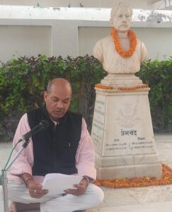 वाराणसी। प्रेमचंद मार्गदर्शन केन्द्र ट्रस्ट लमही की ओर से प्रतिदिन आयोजित सुनो मैं प्रेमचंद आडियो प्रसारण के 1007 वें दिन प्रेमचंद्र की कहानियों के सजीव प्रसारण में प्रेमचंद स्मारक लमही में मुंशी प्रेमचंद की कहानी गरीब की हाय का पाठ साहित्यकार व्योमेश चित्रवंश ने किया। प्रसिद्ध साहित्यकार डा.रामसुधार सिंह का स्वागत और सम्मान श्रीप्रकाश श्रीवास्तव ने किया। संस्था के निदेशक राजीव गोंड ने कहा कि प्रतिदिन प्रेमचंद की एक कहानी का प्रसारण किया जाता है। प्रेमचंद ने इन समस्याओं को केवल लिखा ही नहीं बल्कि देखा और महसूस भी किया यही कारण है कि प्रेमचंद की कहानी के पात्र गाँव के है। इस अवसर पर पवन पाठक, धीरज दूबे, राजेश कुमार, अजय यादव , ध्रुव कुमार, सुर्यभान, अजय कुमार, देव बाबू, उदय, रोहित, हरेन्द्र सिंह , सुरेश चंद्र दुबे आदि थे। संचालन व धन्यवाद ज्ञापन मनोज कुमार विश्वकर्मा ने किया।