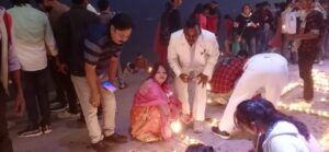 केशरी नंदन स्मृति संस्थान के अध्यक्ष डा उषा शाही के नेतृत्व सभी पदाधिकारी व सदस्यो की उपस्थिति जनसमूह के साथ जानकी घाट पर सांयकाल आकर्षक रंगोली अल्पना बनाकर हजारों दीपक प्रज्वलित किया। दीपक जलते ही जानकी घाट जगमग उठा। तत्पश्चात मां गंगा की भव्य आरती डा उषा शाही व उपस्थित जनसमूह ने घंटा बजाकर, शंखनाद कर की। मां गंगा का पूजन विधि विधान से जितेन्द्र कुमार ने सम्पन्न कराया।