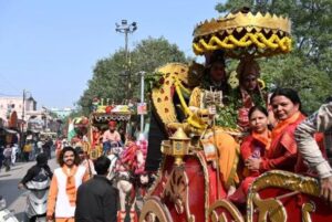 वाराणसी। श्री काशी विश्वनाथ धाम कॉरिडोर लोकार्पण दिवस के दूसरी वर्षगांठ पर काशी विश्वनाथ धाम से मैदागिन तक भव्य शोभा यात्रा निकाली गई। हजारों की संख्या नर नारी नाचते गाते शिव बारात में शामिल हुए। भक्तों का आलम यह रहा कि सड़क पर पांव रखने की जगह नहीं रहा।