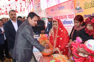 आज़मगढ़।मण्डलायुक्त मनीष चौहान ने मंगलवार को विकास खण्ड सठियॉंव अन्तर्गत ग्राम पंचायत रानीपुर में विकसित भारत संकल्प यात्रा तथा जल जीवन मिशन के अन्तर्गत आयोजित कार्यक्रम का शुभारम्भ विकसित भारत संकल्प यात्रा वैन का फीता काट कर किया। उन्होंने कहा कि इस कार्यक्रम का मुख्य उद्देश्य शासन द्वारा संचालित जनकल्याणकारी योजनाओं का लाभ तथा उसकी जानकारी हर पात्र व्यक्ति तक पहंुचाना है। कार्यक्रम स्थल पर महिला कल्याण, पशुपालन, चिकित्सा एवं स्वास्थ्य, राजस्व, यूनियन बैंक ऑफ इण्डिया, कृषि, आईसीडीएस, पंचायती राज, मनरेगा, जल निगम, श्रम, खाद्य एवं रसद आदि विभागों द्वारा लगाये गये स्टाल का मण्डलायुक्त मनीष चौहान तथा जिलाधिकारी विशाल भारद्वाज ने संयुक्त रूप से सघन निरीक्षण किया। निरीक्षण के दौरान मण्डलायुक्त ने प्रत्येक स्टाल पर उनके द्वारा उपलब्ध सुविधाओं की जानकारी लेते हुए निर्देश दिया कि यदि गॉंव का कोई पात्र व्यक्ति किसान सम्मान निधि, राशन कार्ड, आयुष्मान कार्ड, किसी प्रकार की पेंशन आदि से वंचित है तो मौके पर ही सारी कार्यवाही सम्पन्न कर योजनाओं का लाभ देना सुनिश्चित किया जाय। स्टालों के निरीक्षण के दौरान मण्डलायुक्त द्वारा राज्य पोषण मिशन के तहत गांव के शिशु को खीर खिलाकर अन्न प्रासन कराया गया एवं एक धात्री महिला को टोकरी में फल, चूड़ी, बिन्दी आदि देकर उसकी गोदभराई कराई गयी। जिलाधिकारी विशाल भारद्वाज ने स्टालों के निरीक्षण के दौरान कहा कि शासन की प्रमुख योजनाओं का लाभ पात्र लाभार्थियों तक अनिवार्य रूप से पहुंचाने के लिए विकसित भारत संकल्प यात्रा का गत माह से ही आयोजन लगातार किया जा रहा है। उन्होंने मौके पर उपस्थित अधिकारियों एवं कर्मचारियों को निर्देश दिया कि शासन की योजनाओं का लाभ प्रत्येक पात्र तक पहुंचाना हम सभी की जिम्मेदारी है, इसलिए सुनिश्चित किया जाय कि कोई भी पात्र लाभान्वित होने से वंचित नहीं रहना चाहिए। श्री भारद्वाज ने कहा कि विकसित भारत संकल्प यात्रा अन्यन्त महत्वपूर्ण है, इसलिए इसके मकसद के प्रति पूरी गंभीरता बरती जाय, इसमें किसी प्रकार की लापरवाही बर्दाश्त नहीं की जायेगी. मण्डलायुक्त मनीष चौहान तथा जिलाधिकारी विशाल भारद्वाज द्वारा ने इसी क्रम में ग्राम पंचायत रानीपुर में जल जीवन मिशन योजना के तहत उत्तर प्रदेश जल निगम (ग्रामीण) द्वारा कराये जा रहे ओवर हेड टैंक के निर्माण की स्थिति का भी मौके पर जाकर जायजा लिया। कार्यदायी विभाग द्वारा बताया गया कि 300 केएल की क्षमता के ओवर हेड टैंक का निर्माण कराया जा रहा है, जो 40 प्रतिशत तक तैयार हो चुका है तथा आगामी मई माह में पूरा किया जाना है। इस ओवर हेड टैंक से 4 गांव आच्छादित हैं जिसमें कुल 307 परिवारों को कनेक्शन 