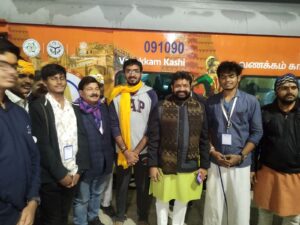 वाराणसी। “काशी तमिल संगमम” में तमिलनाडु से आए छात्र (गंगा) के डेलिगेट्स देर रात बनारस रेलवे स्टेशन से गंतव्य तमिलनाडु के लिए रवाना हुए।बनारस स्टेशन पर उत्तर प्रदेश के आयुष एवं खाद्य सुरक्षा राज्य मंत्री (स्वतंत्र प्रभार) दयाशंकर मिश्र “दयालु” ने यात्रियों को सीऑफ/विदाई दी। डेलिगेट्स के सदस्यों ने कार्यक्रम के दौरान हुई व्यवस्थाओं के लिए उत्तर प्रदेश सरकार को मंत्री से बधाई एवं शुभकामना दी।