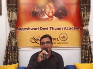 वाराणसी।स्वरांगना ललित कला केन्द्र द्वारा संचालित सिद्धगिरी बाग स्थित बागेश्वरी देवी ठुमरी अकादमी में आपकी महफ़िल कार्यक्रम के अंतर्गत आज की शाम मुहम्मद रफ़ी के नाम रही। आज के कलाकार काशी के अनूप कुमार उपाध्याय ने रफी साहब के ढेर सारे सदा बहार गीत सुनाए । संचालन प्रियंका मिश्रा ने की। अतिथियों का स्वागत संस्था के सचिव सुरेन्द्र मिश्र शीलू एवं धन्यवाद ज्ञापन कार्यक्रम संयोजक प्रफुल्ल चंद्र राय ने किया । आयोजन में सर्वश्री राजेन्द्र कुमार गुप्ता, अतुल राय, वन्दना मिश्रा, दिव्या जैन, विनोद शंकर उपाध्याय, रूपेश जैन, प्रिया राय, मुकुंद शर्मा, मीरा राय मुग्धा कश्यप, प्रखर कुमार, तनु राय आदि की उपस्थिति रही । प्रमुख प्रस्तुति – दीवाने का नाम तो पूछो, आज मौसम बड़ा बेईमान है, ये वादियां ये फिजाएं बुला रहीं हैं हमें, आज की रात मेरे दिल की सलामी लेले, तेरे प्यारी प्यारी सूरत को किसी की नज़र ना लगे, अकेले हैं चले आओ जहां हो, कोई सागर दिल को बहलाता नहीं, हुई शाम उनका ख्याल आ गया