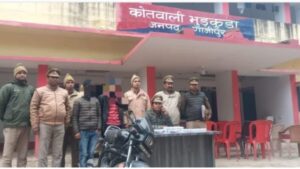 गाजीपुर। पुलिस अधीक्षक व्दारा अपराध व अपराधियों (लुटेरे/वाहन चोरी) के विरुद्ध चलाए जा रहे अभियान के तहत अपर पुलिस अधीक्षक नगर के कुशल निर्देशन व क्षेत्राधिकारी भुड़कुड़ा के निकट पर्यवेक्षण में शुक्रवार को रामबन अखाड़ा के सामने लूट में संलिप्त दो नफर कथित अभियुक्त आदित्य सिंह पुत्र रोशन पुत्र ऋषिकेश सिंह निवासी ग्राम जूआ हंकार पुर थाना तरवां जनपद आजमगढ़ हाल पता जखनियां गोविंद थाना भुड़कुड़ा गाजीपुर।दूसरा आविष्कार सिंह उर्फ जिम्मी पुत्र राकेश सिंह निवासी अलीपुर मंदरा थाना भुड़कुड़ा गाजीपुर के कब्जे से लुट का बरामद शुदा 22000/दो एटीएम कार्ड, एक अदद पिस्टल बत्तीस बोर , जिंदा कारतूस , एक स्पेलेण्डर मोटरसाइकिल जिसका नम्बर up50 सी जे 8669 भुड़कुड़ा से गिरफ्तार किया।