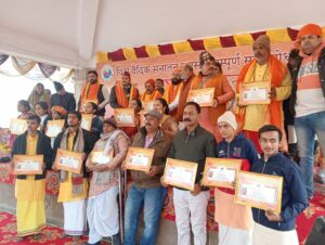 इस अवसर पर समाज में सनातन के लिए प्राण प्रतिष्ठा से संलग्न सनातनियों में रामलीला समिति दुर्गा पूजा समिति, सनातन कथा वाचक, प्रमुख मंदिरों के महत एवं समाजसेवियों को यथोचित मान सम्मान अर्पित किया गया।
