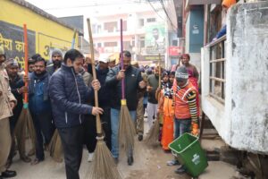 आज़मगढ़ । मण्डालयुक्त मनीष चौहान व जिलाधिकारी विशाल भारद्वाज ने रविवार को नगर पालिका परिषद आज़मगढ़ के वार्ड नम्बर 12, सिधारी पश्चिमी की गलियों में झाड़ू लगाकर 14 से 21 जनवरी तक चलने वाले स्वच्छ तीर्थ अभियान, महा सफाई अभियान का शुभारम्भ किया। इस दौरान अपर जिलाधिकारी (वित्त एवं राजस्व)/प्रभारी अधिकारी, स्थानीय निकाय, आजाद भगत सिंह, अध्यक्ष, नगर पालिका परिषद सरफराज़ आलम ‘मंसूर’ तथा अतिरिक्त मजिस्ट्रेट-प्रथम/प्रभारी अधिशासी अधिकारी रोहित यादव, सभासद आदि ने भी गलियों की साफ सफाई में प्रतिभाग करते हुए नागरिकों को साफ सफाई और स्वच्छता के प्रति जागरूक किया। मण्डलायुक्त श्री चौहान ने कहा कि साफ सफाई हम सभी का कार्य है तथा अपने गांव, अपने शहर को स्वच्छ रखना हम सभी का कर्तव्य है। उन्होंने कहा कि स्वच्छता से हमें स्वास्थ्य लाभ भी मिलता है।