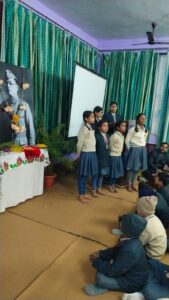 कक्षा 4 के छात्र -छात्राओं ने नेता जी पर गीत तथा कक्षा 5 की साक्षी सिहं ने नेता जी पर एक ओजपूर्ण कविता प्रस्तुत किया।विद्यालय की छात्रा प्रियंका चतु्र्वेदी व छात्र प्रिंस सिहं ने नेता जी पर एक भाषण प्रस्तुत किया। विद्यालय के उपप्रबंधक जी ने नेता जी के जीवन पर प्रकाश डाला तथा साथ ही आजादी के प्रति उनके द्वारा किये गये संघर्षो से हम सभी को अवगत कराया। कार्यक्रम का संचालन पलक तिवारी व खुशी ने किया।