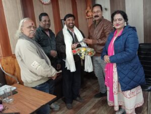 नादान परिंदे साहित्य मंच राष्ट्रीय अध्यक्ष डा सुबाष चंद्र, राष्ट्रीय कोषाध्यक्ष झरना मुखर्जी, वरिष्ठ कवि सिध्दनाथ शर्मा व पत्रकार डा कैलाश सिंह विकास ने पुष्प गुच्छ, अंगवस्त्र,शाल,पेन डायरी देकर अभिनंदन किया।