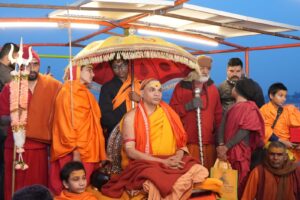 वाराणसी।परमाराध्य परमधर्माधीश उत्तराम्नाय ज्योतिष्पीठाधीश्वर जगदगुरु शङ्कराचार्य स्वामीश्रीः: अविमुक्तेश्वरानन्द: सरस्वती ‘१००८” के आज काशी पधारने पर काशीवासियों, सन्तों व भक्तों ने अन्त्यंत हर्ष के साथ जयोद्घोष करते हुए भव्य स्वागत-वन्दन किया।