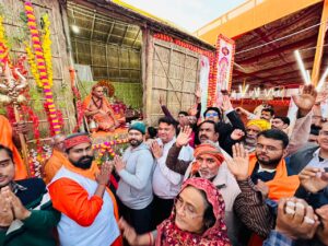 दोपहर 12 बजे शंकराचार्य शिविर के बाहर श्रद्धालुओं की भीड़ इकट्ठी हुई जिसे जगद्गुरु महाराज ने अपनी पर्णकुटी से संबोधित किया और आशीर्वाद भी दिया।
