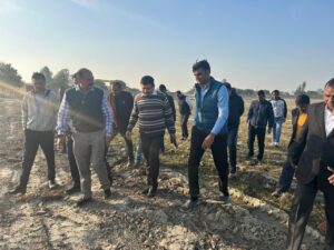 मंडलायुक्त ने उक्त परिसर में प्रधानमंत्री के सभा को प्रस्तावित भूमि का स्थलीय निरीक्षण करते हुए बनने वाले स्टेज, सभास्थल पर लोगों के प्रवेश आदि को देखते हुए भूमि के समतलीकरण का आदेश दिया।