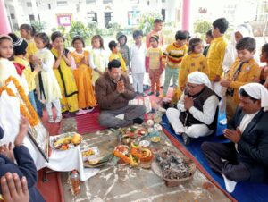 आजमगढ़।वेदान्ता इंटरनेशनल में बसंत पंचमी के अवसर पर प्रार्थना सभा में बच्चों ने विभिन्न प्रकार के सांस्कृतिक कार्यक्रम के साथ ही माँ वीणावादिनी का विधिवत पूजन अर्चन कर कार्यक्रम का शुभारंभ किया। कार्यक्रम में सभी बच्चे पीले पीले रंग में बहुत ही आकर्षक और मनमोहक लग रहे थे। कार्यक्रम को आगे बढ़ाते हुवे प्रकाण्ड विद्वान पुष्पेन्द्र मिश्रा ने माँ सरस्वती का मंत्रोच्चार कर हवन पूजन किया उसके बाद बच्चों ने माँ सरस्वती से बुद्धि और ज्ञान स्वरूप आशीर्वाद मांगा।सभी बच्चों को प्रसाद वितरित किया गया।