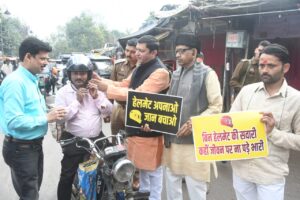 वाराणसी। मैदागिन चौराहे पर बिना हेलमेट धारण किए आने जाने वाले बाइक सवारों के बीच सामाजिक संस्था सुबह-ए- बनारस क्लब के बैनर तले लक्ष्मी हॉस्पिटल के प्रबंध निदेशक डॉ अशोक कुमार राय, संस्था अध्यक्ष मुकेश जायसवाल, कोषाध्यक्ष नंदकुमार टोपी वाले के नेतृत्व में दर्जनों बाइक सवारों को रोककर उनके मस्तक पर तिलक लगाने के साथ संस्था की ओर सुरक्षा की दृष्टि से जागरूकता के तहत उनको निशुल्क में हेलमेट पहना गया और उनके मस्तक पर तिलक और माल्यार्पण करने के साथ उनसे अपील किया गया कि वह जब भी बाइक से बाहर निकले जान है तो जहान है, अपनी सुरक्षा अपने हाथ के तहत सिर पर हेलमेट धारण करके निकले। लक्ष्मी हॉस्पिटल के प्रबंध निदेशक डॉ अशोक कुमार राय, संस्था अध्यक्ष मुकेश जायसवाल, कोषाध्यक्ष नंदकुमार टोपी वाले ने कहा कि हेलमेट पहनना सुरक्षा की दृष्टि से बहुत जरूरी है। इसे चालान से बचने के लिए नहीं बल्कि सुरक्षा के लिए पहने। अक्सर देखा जाता है कि किसी भी दुर्घटना में सिर पर चोट लगने के कारण ज्यादातर मौतें होती हैं। ऐसी स्थिति में सिर पर धारण किया गया हेलमेट जीवन रक्षक के रूप में काफी राहत प्रदान करता है। बाइक चलाते वक्त सदैव यह जेहन रखें कि घर पर आपका परिवार आपके माता- पिता पत्नी-बच्चे आपके सकुशल वापसी की के इंतजार में रहते हैं।ऐसे में बिना रिस्क के अपने आपको सुरक्षित रखते हुए यातायात के नियमों का पालन करते हुए अपने घर या गंतव्य स्थान पर पहुंचे। क्योंकि आपका जिंदगी आपके परिवार के लिए अनमोल है। इसे बेवक्त ना गवाएं। कार्यक्रम में मुख्य रूप से डॉ अशोक कुमार राय, मुकेश जायसवाल, नंदकुमार टोपी वाले, श्याम दास गुजराती, ललित गुजराती, बी. डी.टकसाली सहित कई लोग शामिल थे।