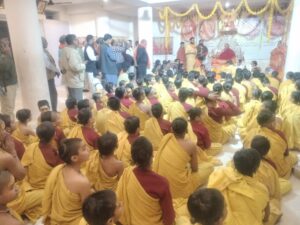 उपस्थित सन्तों,भक्तों व वैदिक विद्यार्थियों ने जयोद्घोष व पुष्पवर्षा कर पूज्यपाद शङ्कराचार्य जी महाराज का स्वागत,अभिनन्दन व वन्दन किया।