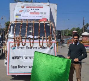 वाराणसी। मुख्य विकास अधिकारी हिमांशु नागपाल ने आगामी लोक सभा सामान्य निर्वाचन 2024 के अवसर पर स्वीप योजना के अन्तर्गत मतदाता जागरूकता हेतु गुरुवार को विकास भवन से मतदाता जागरूकता एक्सप्रेस एलईडी वैन को जनपद भ्रमण हेतु हरी झंडी दिखाकर रवाना किया। यह वैन विशेष रूप से लो वोटर टर्न-आउट वाले विधान सभा निर्वाचन क्षेत्रों में भ्रमण करेगा।