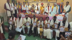 वाराणसी ।महानगर के राम कटोरा, स्थित महामना मालवीय सभागार में विक्रमशिला हिन्दी विद्यापीठ भागलपुर के जनसंपर्क अधिकारी कवि इंद्रजीत तिवारी निर्भीक के प्रमुख संयोजन/संचालन में डॉ.संभाजी राजाराम बाविस्कर (कुलपति, विक्रमशिला हिन्दी विद्यापीठ भागलपुर) ने वैश्विक हिन्दी महासभा के अंतरराष्ट्रीय अध्यक्ष डॉ. विजेंद्र विजयानन्द के अध्यक्षता , काशी सेवा समिति के सभापति डॉ.राम अवतार पाण्डेय एडवोकेट के प्रमुख संरक्षण में मानव समाज के विभिन्न क्षेत्रों से जुड़े लोगों को हिन्दी – साहित्य शिरोमणि, विद्या -सागर एवं विद्या-वाचस्पति विशेष मानद सम्मान – डाक्ट्रेट मानद उपाधि समतुल्य भेंट करके विशेष रूप से सम्मानित किया।जिसका संचालन कवि इंद्रजीत तिवारी निर्भीक ने किया।