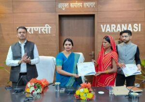 एन.आई.सी में आयोजित कार्यक्रम की अध्यक्षता जिला पंचायत अध्यक्ष पूनम मौर्या ने किया। जनपद के 08 लखपति महिलाओं रेखा (विकासखण्ड हरहुआ), मधुबाला (विकासखण्ड चोलापुर), नीतू एवं सुनीता (विकासखण्ड बड़ागावं), ममता व संध्या मिश्रा (विकासखण्ड काशी विद्यापीठ) तथा प्रीती त्रिपाठी व शालिनी सिंह (विकासखण्ड पिण्डरा) को सम्मान पत्र, चंदा गुप्ता व रीना गुप्ता (विकासखण्ड सेवापुरी) को वन जीपी वन बीसी सखी कार्यक्रम अन्तर्गत डिवाइस वितरण, मनोरमा (विकासखण्ड पिण्डरा), तारा पाल (विकासखण्ड काशी विद्यापीठ), पुष्पा (विकासखण्ड आराजीलाइन), श्वेता सिंग (विकासखण्ड बड़ागावं) तथा बबिता मिश्रा (विकासखण्ड हरहुआ) को वन जीपी वन बीसी सखी कार्यक्रम अन्तर्गत साड़ी वितरित की गयी।गीता एवं उनके समूह (विकासखण्ड चिरईगावं) द्वारा बनाये जा रहे हर्बल गुलाल को समूह की महिलाओं की तरफ से जिला पंचायत अध्यक्ष महोदया, जिलाधिकारी महोदय व मुख्य विकास अधिकारी महोदय को भेंट किया गया।