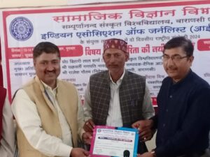 वाराणसी। सम्पूर्णानंद संस्कृत विश्वविद्यालय के सामाजिक विज्ञान विभाग एवं इण्डियन एसोसिएशन ऑफ जनर्लिस्ट के संयुक्त तत्वावधान में विश्वविद्यालय के योग साधना केंद्र में आयोजित पत्रकारिता की नयी चुनौतियां विषयक दो दिवसीय राष्ट्रीय संगोष्ठी के दूसरे दिन समापन सत्र के मुख्य अतिथि (निदेशक, आकाशवाणी वाराणसी) राजेश गौतम ने कहा कि पत्रकारिता एक तपस्या है। इसमें ईमानदारी, सत्यता, निष्पक्षता, जानकारी, नैतिक गुण, आदि का होना जरूरी है।