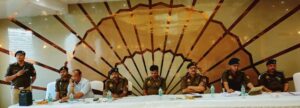 वाराणसी/शिवपुर। होली एवं रमजान पर्व को सकुशल संपन्न कराने हेतु गुरुवार की शाम शिवपुर स्थित एक लान में पुलिस उच्चाधिकारियों ने वरुणापार जोन के सभी थानों और संभ्रांत नागरिकों संग बैठक की। त्योहार को सकुशल और सौहार्दपूर्ण माहौल में संपन्न कराने हेतु अपील किया। बैठक में अपर पुलिस आयुक्त एस. चिनप्पा, पुलिस उपायुक्त वरुणाजोन श्याम नारायण सिंह, एडीएम सिटी आलोक कुमार, अपर पुलिस उपायुक्त टी सरवन, एसीपी कैन्ट विदुष सक्सेना, एसीपी सारनाथ अतुल अंजान त्रिपाठी, एसीपी रोहनिया संजीव उपाध्याय सहित वरुणापार जोन के समस्त थानाप्रभारी और अन्य पुलिसकर्मी मौजूद रहे। संचालन कर रहे एसीपी सारनाथ अतुल अंजान त्रिपाठी ने कार्यक्रम स्थल पर विभिन्न क्षेत्रों से उपस्थित लोगों से उनके क्षेत्र में त्योहार के समय होने वाली समस्याओं के बारे में विस्तार से जाना और उसके निस्तारण हेतु सम्बंधित थानेदारों को निर्देशित किया। अपर पुलिस आयुक्त एस. चिनप्पा ने कहा कि कानून व्यवस्था में व्यवधान उत्पन्न कर रंग में भंग डालने वालों को किसी भी दशा में बख्शा नहीं जाएगा। शरारती एवं अराजक तत्वों पर पुलिस की पैनी नजर रहेगी। यदि कोई अफवाह फैलाने या शांति भंग करने का प्रयास करेगा तो उसे हवालात की हवा खानी पड़ेगी। उन्होंने कहा कि रमजान एवं होली के त्यौहार को भाईचारे के साथ मनाएं और जबरदस्ती किसी को रंग न लगायें, यदि किसी प्रकार की समस्या होती है तो तत्काल थाने को सूचना दें। ट्रिपल लोड बाइक, शराब पीकर गाड़ी चलाने वाले और मनचलों पर विशेष नजर पुलिस रखेगी। बैठक में उपस्थित लोगों को आदर्श आचार संहिता के नियमों की जानकारी दी गई और पालन करने हेतु कहा गया।