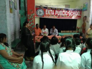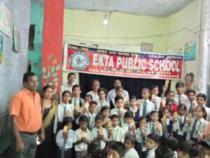 अतिथियों का स्वागत एकता पब्लिक स्कूल की प्रधानाचार्या श्रीमती कृष्णावती देवी ने की।