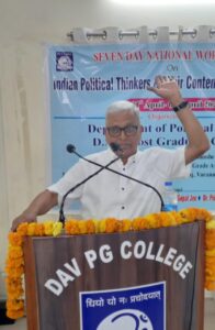 वाराणसी। महात्मा गांधी इस बात से भलीभाँति अवगत थे कि भारत जैसा विशाल देश कभी एक विचारधारा में सीमित होकर नही चल सकता, इसलिए उन्होंने सभी विचारधाराओं के समन्वय के साथ स्वतंत्र भारत की परिकल्पना की थी। उक्त विचार बुधवार को डीएवी पीजी कॉलेज के राजनीति विज्ञान विभाग के तत्वावधान में चल रहे सात दिवसीय ‘भारतीय राजनीतिक चिंतक एवं उनकी वर्तमान प्रासंगिकता’ विषयक राष्ट्रीय कार्यशाला के तीसरे दिन गांधी अध्ययन पीठ, महात्मा गांधी काशी विद्यापीठ के पूर्व निदेशक प्रो. आर.पी. द्विवेदी ने व्यक्त किये। रामराज्य पर गांधी के विचार विषय पर प्रकाश डालते हुए प्रो. द्विवेदी ने कहा कि गांधी विश्व के सहस्त्राब्दी पुरुष है, उनके विचार कभी भी अप्रासंगिक हो ही नही सकते। मार्टिन लूथर किंग जूनियर जब सपरिवार भारत आये तो उन्होंने भारतभूमि को नमन करते हुए तीर्थ भूमि कहकर संबोधित किया, उन्होंने कहा कि जिस भूमि में गांधी जी जैसे महापुरुष का जन्म हुआ वह भूमि पर्यटन की नही बल्कि तीर्थ स्थल है।
