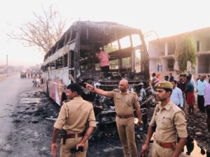 बस में आग देख पास ही मौजूद पुलिस के जवानों ने तत्काल ओवरटेक कर बस को रुकवाया। उस समय यात्री सो रहे थे ।