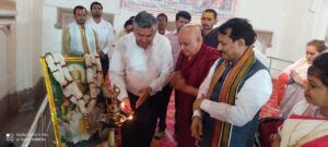 मंच पर आसीन अतिथियों के द्वारा दीप प्रज्वलन एवं माँ सरस्वती के प्रतिमा पर माल्यार्पण किया गया।
