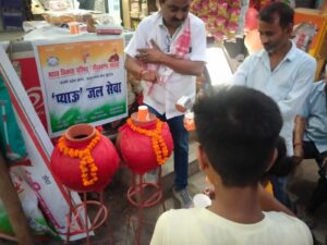 वाराणसी। भीषण गर्मी को देखते हुए भारत विकास परिषद काशी प्रदेश उत्तर मध्य क्षेत्र द्वितीय (नीलकण्ठ शाखा) ने दो नि:शुल्क प्याऊ का शुभारंभ करौंदी चौराहा व अंबेडकर ग्राम पर किया। साथ ही मवेशियों, पक्षियों व अन्य सभी जीव जन्तुओं के पानी पीने हेतु नादों को अंबेडकर ग्राम एवं आदित्य नगर में लगाया। इस अवसर पर विभा मौर्य, गिरीश, सुनील अग्रहरी आदि थे । शाखाध्यक्ष राकेश मौर्य ने जीवन में जल की महत्ता पर प्रकाश डाला और धन्यवाद ज्ञापन किया। राजीव गुप्ता ने कहा कि ‘तेज धूप में जब पथिकों का कंठ सूखता जाए, ऐसे में छोटी-सी प्याऊ सबकी प्यास बुझाए । चौराहे या किसी मोड़ पर रखकर मटके लाले । गीला कपड़ा डाले दिखते सेवक प्याऊ वाले ।’
