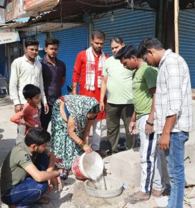 गोरक्षा के नगर अध्यक्ष अरविन्द मोदनवाल ने बताया कि भीषण गर्मी एवं चिलचिलाती धुप में बेसहारा गौवंश, बंदर एवं अन्य पशु पक्षियों को पीने का पानी नहीं मिल पाता है ।जिसको देखते हुए नगर में विभिन्न स्थानों पर पशुओं के लिए जलपात्र लगवाए जाते हैँ और प्रत्येक जलपात्र कि देखरेख एवं रोजाना पानी भरने हेतु स्थानीय कार्यकर्ताओं को जिम्मेदारी दी जाती है ताकि पात्र सुरक्षित रहे और उसकी उपयोगिता बनी रहे।