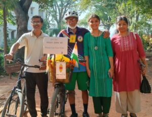 वाराणसी। देश प्रदेश के युवाओं को प्राचीन भारतीय शास्त्रीय संगीत एवं लोककला से जोड़ने के उद्देश्य स्पिक मैके के संस्थापक पद्मश्री डॉ किरण सेठ पूरे भारत में साइकिल यात्रा के माध्यम से लोगों को जागरूक एवं सन्देश दे रहें हैं। चार दिन के प्रवास के दौरान उन्होंने वाराणसी के विभिन्न स्कूल कॉलेजों एवं विश्वविद्यालय में शिक्षकों विद्यार्थियों को स्पिक मैके से जुड़कर शास्त्रीय संगीत एवं लोक कला के प्रचार प्रसार में योगदान देने का आह्वान किया। उन्होंने काशी में अपना 75वां जन्मदिन बनारस घराने के ख्यातिप्राप्त कलाकारों एवं बच्चों के बीच मनाया। काशी विश्वनाथ मंदिर एवं संकटमोचन मंदिर में दर्शन पूजन भी किया। संकटमोचन मंदिर के महंत पं डॉ विश्वम्भर नाथ मिश्र से भी मुलाक़ात की। रविवार को आईआईटी बीएचयू के मैकेनिकल इंजीनियरिंग विभाग में वाराणसी के शिक्षाविद चिकित्सकों इंजीनियर समाजसेवियों एवं विभिन्न स्कूल कॉलेज के विद्यार्थियों से संवाद स्थापित किया और उन्हें स्पिक मैके के नये स्वयंसेवक के रूप में पदभार ग्रहण कराया और शास्त्रीय संगीत एवं सांस्कृतिक विरासत को सहेजने हेतु लोगों से जुड़कर प्रचार प्रसार एवं एकाग्रता एवं धैर्य से कार्य करने की सलाह दी। उन्होंने सभी स्वयंसेवकों को मतदान अवश्य करने की शपथ दिलाई। उन्होंने अपने सम्बोधन में कहा कि संगीत में अवसाद को कम करने की एक अद्भुत शक्ति है रात में शास्त्रीय संगीत सुनने पर जब सुबह ब्रेन मैपिंग कराया गया तो डिप्रेशन लगभग जीरो मापा गया है। सोमवार को उनकी साइकिल यात्रा सुबह बसंत कन्या महाविद्यालय राजघाट से शुरू हुईं जो भदोही होते हुए प्रयागराज जायेगी और लखनऊ में जाकर समाप्त होगी। बीच में वह अयोध्या में श्री राम मंदिर में जाकर श्री रामलला का दर्शन भी करेंगे। उनकी सफल साइकिल यात्रा के लिए स्पिक मैके यूपी के चेयर पर्सन उमेश चंद्र सेठ बीना सेठ प्रदेश समन्वयक डॉ मधु शुक्ला प्रदेश कोषाध्यक्ष डॉ शुभा सक्सेना सहसमन्वयक डॉ विभा सिंह, प्रो राजेश उपाध्याय,डॉ लक्ष्य, डॉ हनुमान गुप्ता,मेघना कश्यप, शिव प्रसाद, सत्या भूमि मीडिया प्रभारी पवन सिंह, मनोज जायसवाल सहित स्पिक मैके से जुड़े सभी युवा सदस्यों ने उनके आगामी साइकिल यात्रा को सफलतापूर्वक पूर्ण होने की शुभकामनाएं दी।