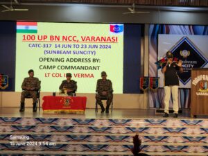 वाराणसी। “स्वास्थ्य, सुरक्षा, स्वच्छता एवं ट्रेनिंग शिविर के मुख्य बिंदु होंगे। किसी राष्ट्र को स्वस्थ रखने के लिए उस देश केनागरिकों का स्वस्थ होना जरूरी है ,अतः इस शिविर में हम स्वच्छता एवं स्वास्थ्य पर विशेष ध्यान देंगे । आज के दौर का सबसे बड़ा संकट जल संकट है। आने वाले वक्त में यह हमारी सबसे बड़ी समस्या होगी। हमें अभी से इसके प्रति सजग होना होगा। फौज में प्रत्येक जवान की पीठ पर एक छोटे बोतल में पानी होता है। इस पानी का प्रयोग संकट काल में ही जवान करता है। जल संयोजन का यह एक बेहतर नमूना है। इसी प्रकार हमें भविष्य के लिए जल संयोजन करना होगा। यह बातें सनबीम सनसिटी करसड़ा में 100 बटालियन एनसीसी के संयुक्त वार्षिक शिविर – 317 शुभारंभ के अवसर पर कैडेटों को संबोधित करते हुए कैंप कमांडेट लेफ्टिनेंट कर्नल ईला वर्मा ने कहीं।