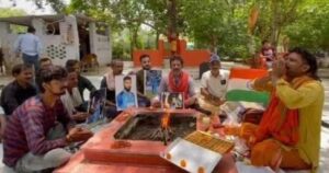 वाराणसी। टी-20 विश्वकप में टीम इंडिया की जीत के लिए अर्दली बाजार (महावीर मंदिर) में शनिवार को शिवसेना राज्य उप प्रमुख अजय चौबे के नेतृत्व में यज्ञ किया गया। श्री चौबे ने कहा कि भारत का नाम क्रिकेट में विश्व विजेता के रूप में अंकित हो, जिसके लिए महावीर मंदिर व्यायामशाला में हवन-पूजन यज्ञ कर जीत की कामना की गई।