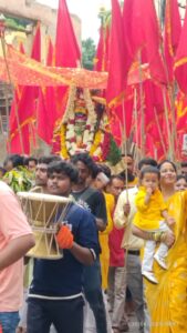अंगवस्त्र से सम्मान किया गया । कार्यकारिणी प्रमुख हर्षद अग्रवाल द्वारा डमरु दल के सभी सेवादारों को अंगवस्त्र के साथ सम्मान किया गया । श्याम दरबारी मंडल के प्रभारी अभिषेक अग्रवाल द्वारा चरण पादुका की व्यवस्थाओं को सुव्यवस्थित रूप से व्यवस्थित करने हेतु उनका सम्मान किया गया । दूर-दूर से आए भक्तगण बाबा की मनमोहक सवारी को देखकर भावविभोर हो उठे एवं अपने आंसुओं को ना रोक सके । सभी भक्तगण मंदिर पहुंचकर बाबा को निशाना अर्पण कर प्रसाद प्राप्त कर शोभायात्रा को संपन्न किया । शोभायात्रा में अध्यक्ष अतुल अग्रवाल श्याम के दास महामंत्री सौरभ अग्रवाल प्रभारी अभिषेक अग्रवाल के साथ-साथ अभिषेक अग्रवाल हर्षद अग्रवाल हृदय अग्रवाल आयुष अग्रवाल श्याम अग्रवाल स्नेहा अगरवाल अमित अग्रवाल शिल्पी अग्रवाल श्रेया अग्रवाल अंजू अग्रवाल शिवचरण अग्रवाल हृदेश अग्रवाल एवं अन्य कई भक्तगणों की मुख्य रूप से उपस्थित हुई ।